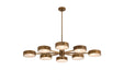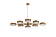 Minimalist, modern and oh so cool. The eight-light Linus chandelier's vibrant heirloom brass finish is perfectly complemented by its polished details. The tempered, frosted glass diffusers serve dual functions creating softer light below and shining additional light to the chandelier's frame, spotlighting its bold finish. This item has a living finish and will age and patina with time. Certified for damp locations and intended for interior use.