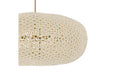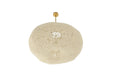 White beechwood hand-carved rings are strung together to reflect a dreamy cumulous cloud. Hung from an iron pipe finished in antique brass, the asymmetrical form of the Yara was made to reflect intriguing shadows on walls and ceilings. This design was made from sustainable materials. Finish will vary.