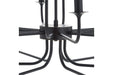 This chandelier features steel arms that curve upwards reaching from a center point at two different heights to create a double tier effect. The entire structure is finished in a bronze tone and is constructed with a seamless design. It’s a modern take on a centuries-old classic. It holds eighteen exposed bulbs for maximum light. Certified for damp locations and intended for interior use.