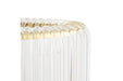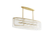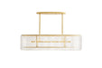 Finding the balance between being exceptionally elegant and devastatingly dramatic, the Chandler commands a space. Echoing traditional Italian design, clear glass delicately dangles from the elongated oblong antique brass steel frame, orchestrating an unconventional shadowplay. Twelve brilliant bulbs work in unison to brighten up a formal space in modern settings. Certified for damp locations and intended for interior use. Also available in brown nickel (89350).