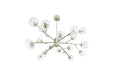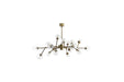 The Dallas chandelier (89981), one of our most popular designs, is now available in a vintage brass finish. This 18-light mid-century inspired design features seedy glass spheres, and 12 out of 18 arms are adjustable, making this the perfect DIY project for your more discerning clients. Shown with small, clear tubular bulbs. Additional pipe available: PIPE-110. Certified for damp locations and intended for interior use. Bulb cannot exceed 3" in length due to globe size.