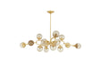 A clever interlocking chain fixture of antique brass-plated iron is adorned with sixteen baubles of smoke seedy glass. This jewelry-inspired style delivers a playful energy wherever it is placed. Certified for damp locations and intended for interior use.