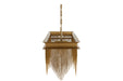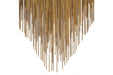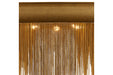 The shapes and textures of Southwest fine jewelry inform a dazzling fixture of vintage brass-plated iron. Zig-zag antique brass chains reminiscent of a lizard's spikes deliver subtle movement and a reflective glimmer. The delicately textured vintage brass iron frame is suspended from the ceiling by dual vintage brass chains. Certified for damp locations and intended for interior use.