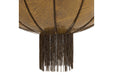 The curved lines and luxurious materials of the Art Deco era inform the scalloped design of the Inaya. The hand-hammered antique brass bowl fixture is designed to deliver an upward wash of light. Delicate antique brass-plated chain details gather along the dome to create a fringed flourish at the base. Certified for damp locations and intended for interior use. Finish will vary.