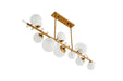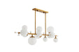 A representation of modern sophistication, this multi-light electrolier defines a space. Varying sizes of opal swirl glass globes embellish a sleek and slender steel frame that works to ground the slightly whimsical design. Small, clear crystal knobs contrast beautifully with the antique brass finish and with the visual textures presented by the swirl finish that graces the glass. Glass will vary. Certified for damp locations and intended for interior use. Additional pipe available (PIPE-101).