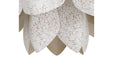 Inspired by the crackled finishes of early 20th century fine French antiques, this petaled fixture is a textural delight. Each shade is applied with ivory resin composite made from genuine eggshells, so that no two are ever quite alike. The iron chain and canopy are finished in white to blend in with the overall aesthetic. Finish will vary.
