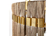 Anchored by matching hook and loop hardware, an elegant drum-shaped light draws its inspiration from the braids and tassels of ancient Greece. A flourish of silken gold and gray fringe is threaded, gathered and bound by shimmering antique brass hardware giving this impactful fixture a timeless appeal. Finish will vary.