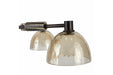 Smoke hammered glass and blackened iron align to lend an industrial edge to our four-light fixture. Intricately etched black marble brackets are an eye-catching counterpoint to the minimalist frame. Finish will vary.